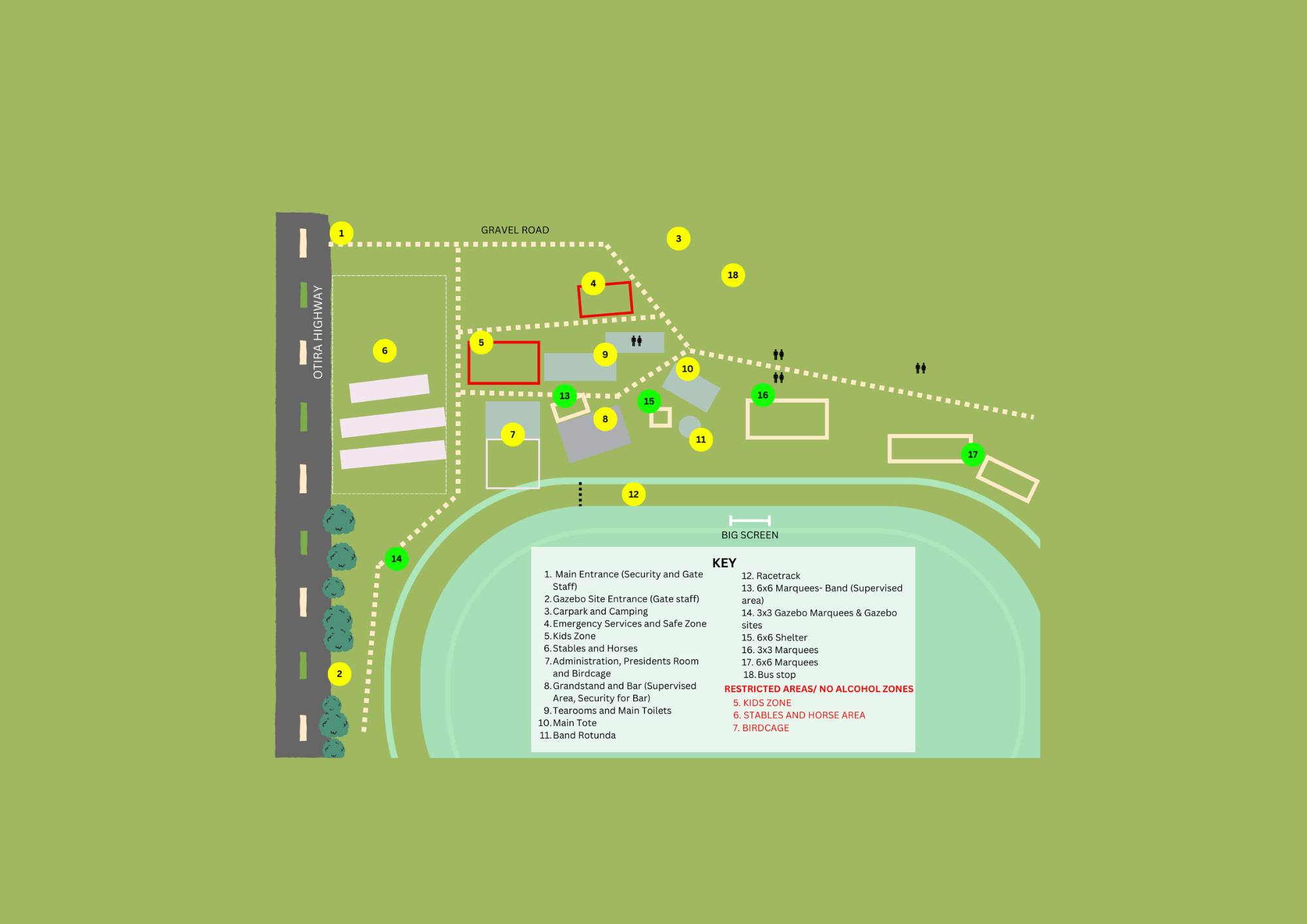 Areas of the course outlined in this map